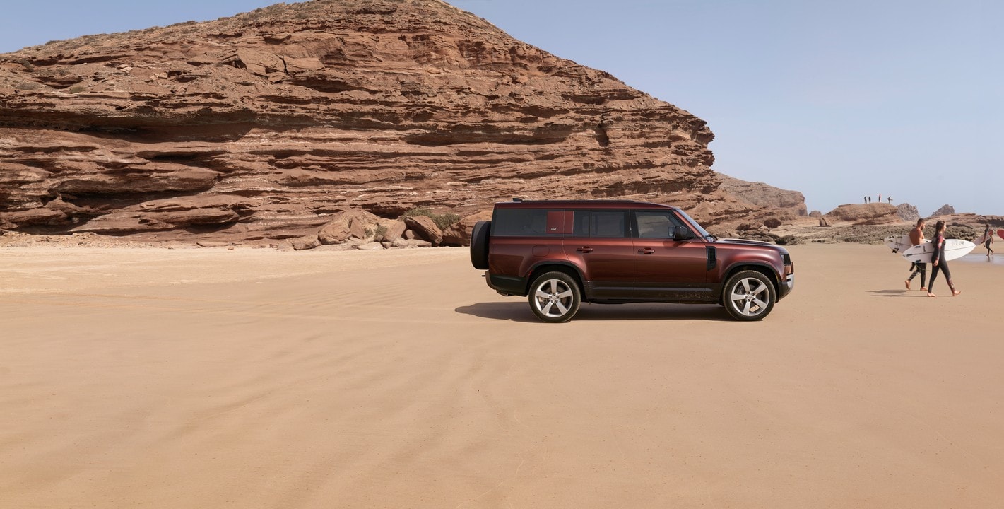 Meanwhile, the new Defender 130 Outbound changes things up, offering reduced seating capacity with two rows in exchange for an expansive cargo area. With a floor mat that folds over the rear bumper for scratch protection while tailgating, the Defender 130 Outbound is the ultimate adventure vehicle, giving you room to sleep, party, or just store all your camping gear with up to 90 cubic feet of rear storage area.