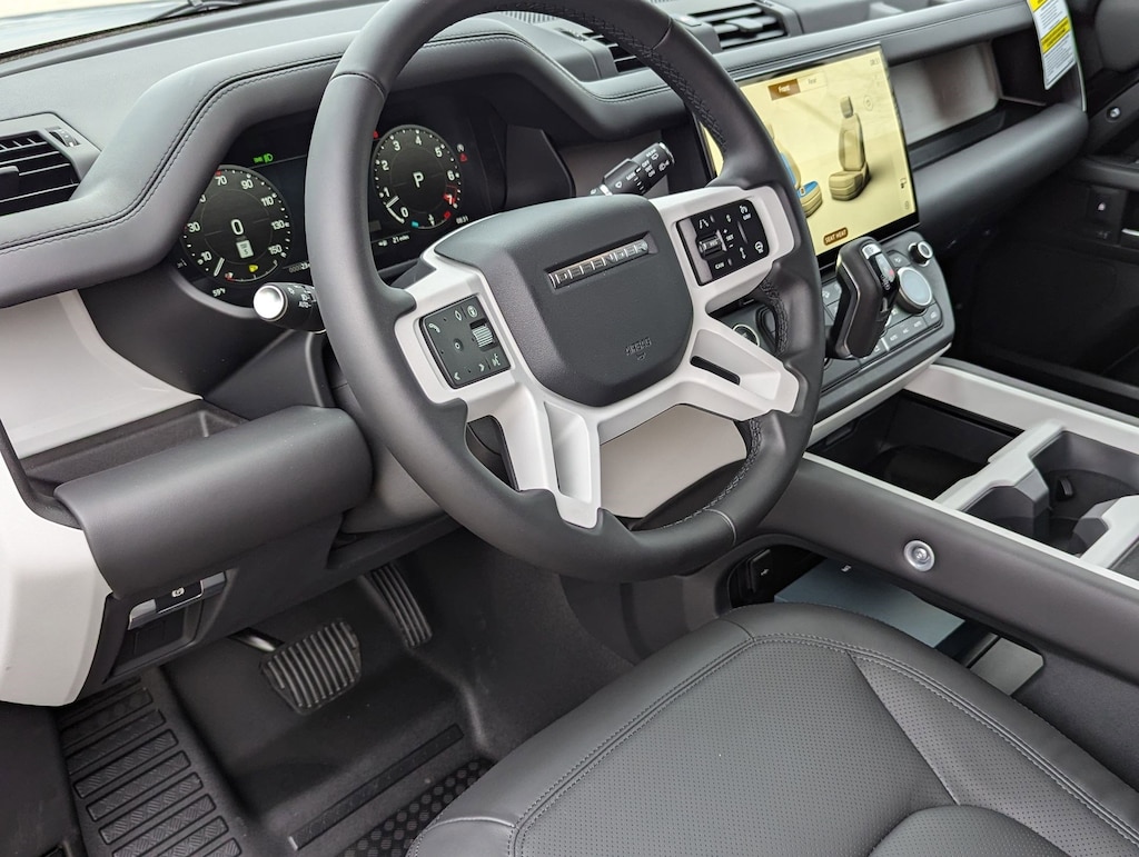 This Land Rover Defender 110 delivers a Intercooled Turbo Gas/Electric I-6 3.0 L/183 engine powering this Automatic transmission. Wireless Phone Connectivity, Wheels: 20" Satin Dark Grey Style 5094, Vinyl/Rubber Floor Trim.