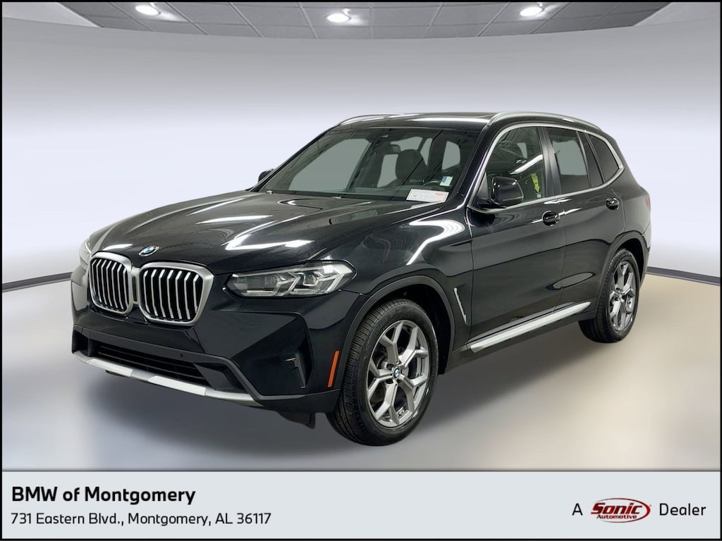 Rear Parking Aid! This 2023 BMW X3 xDrive30i comes complete with Turbocharged, LED Headlights, Woodgrain Interior Trim, Premium Synthetic Seats, Bluetooth Connection, Navigation System, Immobilizer, Blind Spot Monitor, Cross-Traffic Alert, Lane Departure Warning, Front Collision Mitigation, Back-Up Camera and much more. Our staff of certified technicians inspect and re-conditioned every vehicle. No hassles. No worries. Peace of mind. Please chat, email, or call to verify any information in question and to schedule your VIP test drive. Experience the Sonic Price difference for yourself at the BMW Montgomery. We believe a transparent purchase process is the only way to buy a previously owned car, truck, or SUV. That along with market based pricing makes BMW of Montgomery the right place to shop for your next car. We are located at 731 Eastern Blvd, Montgomery, AL 36117. Our showroom is open Monday through Friday from 8:30 -- 7:00pm, and Saturdays until 6pm.