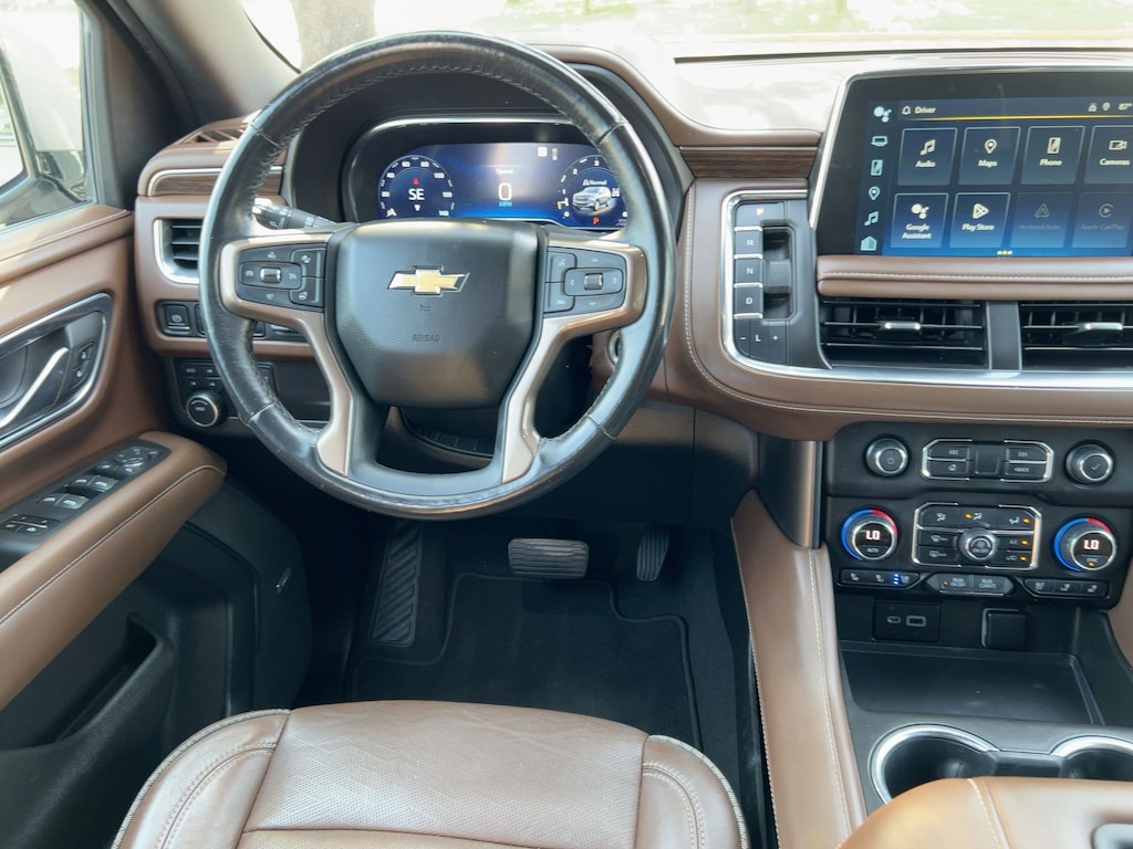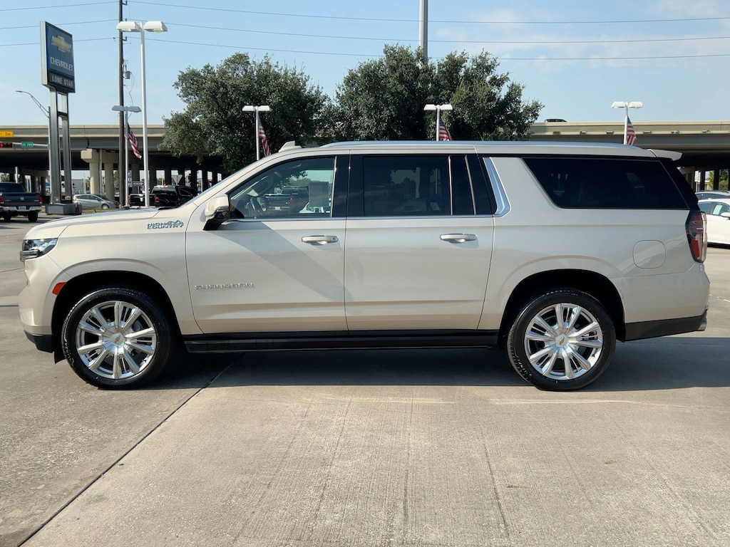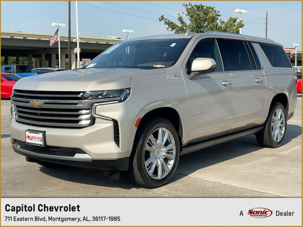 PREMIUM PACKAGE 2 includes (C3U) Panoramic power sunroof (Also includes (B3L) power-retractable assist steps with perimeter lighting., LICENSE PLATE FRONT MOUNTING PACKAGE , SEATS, FRONT BUCKET (STD), REAR AXLE, 3.23 RATIO, NOT EQUIPPED WITH ADAPTIVE CRUISE CONTROL AND ENHANCED AUTOMATIC EMERGENCY BRAKING see dealer for details (Beginning with start of production through October 2, 2022, vehicles will be forced to include (07Z) Not Equipped with Adaptive Cruise Control and Enhanced Automatic Emergency Braking, which removes Adaptive Cruise Control and Enhanced Automatic Emergency Braking. Vehicles will instead include Electronic Cruise Control and Automatic Emergency Braking. See the window label for the features on a specific vehicle.), LPO, WHEEL LOCKS, SET OF 4 (dealer-installed) (Beginning with start of production, certain vehicles will be forced to include (RFV) Not Equipped with (SFE) Wheel Locks, LPO, which removes (SFE) Wheel Locks, LPO. See dealer for details or the window label for the features on a specific vehicle. Included with any 22" RPO wheels. Not available with any LPO wheels. Note that LPO 22" wheels will come with wheel locks without the LPO code (SFE).), JET BLACK/MOCHA, PERFORATED LEATHER SEATING SURFACES 1ST AND 2ND ROW (Interior color has lighter/darker two-tone effect.), HIGH COUNTRY PREFERRED EQUIPMENT GROUP includes standard equipment, ENGINE, 6.2L ECOTEC3 V8 with Dynamic Fuel Management, Direct Injection and Variable Valve Timing, includes aluminum block construction (420 hp [313 kW] @ 5600 rpm, 460 lb-ft of torque [624 Nm] @ 4100 rpm) (STD), EMPIRE BEIGE METALLIC.