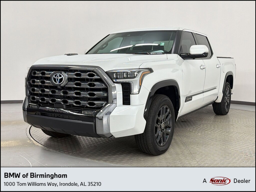 This 2024 Toyota Tundra Platinum Hybrid comes complete with features such as 4WD, Navigation System, Blind Spot Monitor, Front Collision Mitigation, Cross-Traffic Alert, Lane Departure Warning, Lane Keeping Assist, Aerial View Display, Back-Up Camera, Adaptive Cruise Control with Steering Assist, Panoramic Roof, Heated Steering Wheel, Heated/Cooled Front Seats, and much more! This is a One Owner Clean Carfax vehicle. No hassles. No worries. Peace of mind. At BMW of Birmingham! You will be able to purchase your next vehicle with confidence. In each vehicle you will find a folder containing a vehicle reconditioning report, pricing analysis, available warranty options, general vehicle options, and a CARFAX vehicle history. You will not find this level of transparency from any other dealer while purchasing your next vehicle! No detail is too small in our pursuit to offer you quality vehicles at the best prices and with exceptional customer service. Please verify any information in question with BMW of Birmingham. Chat, email, or call to schedule your VIP test drive and experience the difference for yourself at BMW of Birmingham!